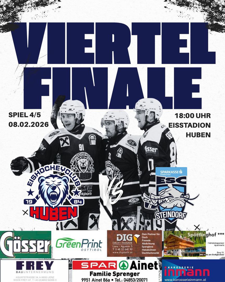 Auch das zweite Spiel der Viertelfinalserie zwischen dem UECR Huben und dem ESC Steindorf wurde wieder zu einem Eishockeykrimi und musste im Penaltyschießen entschieden werden.