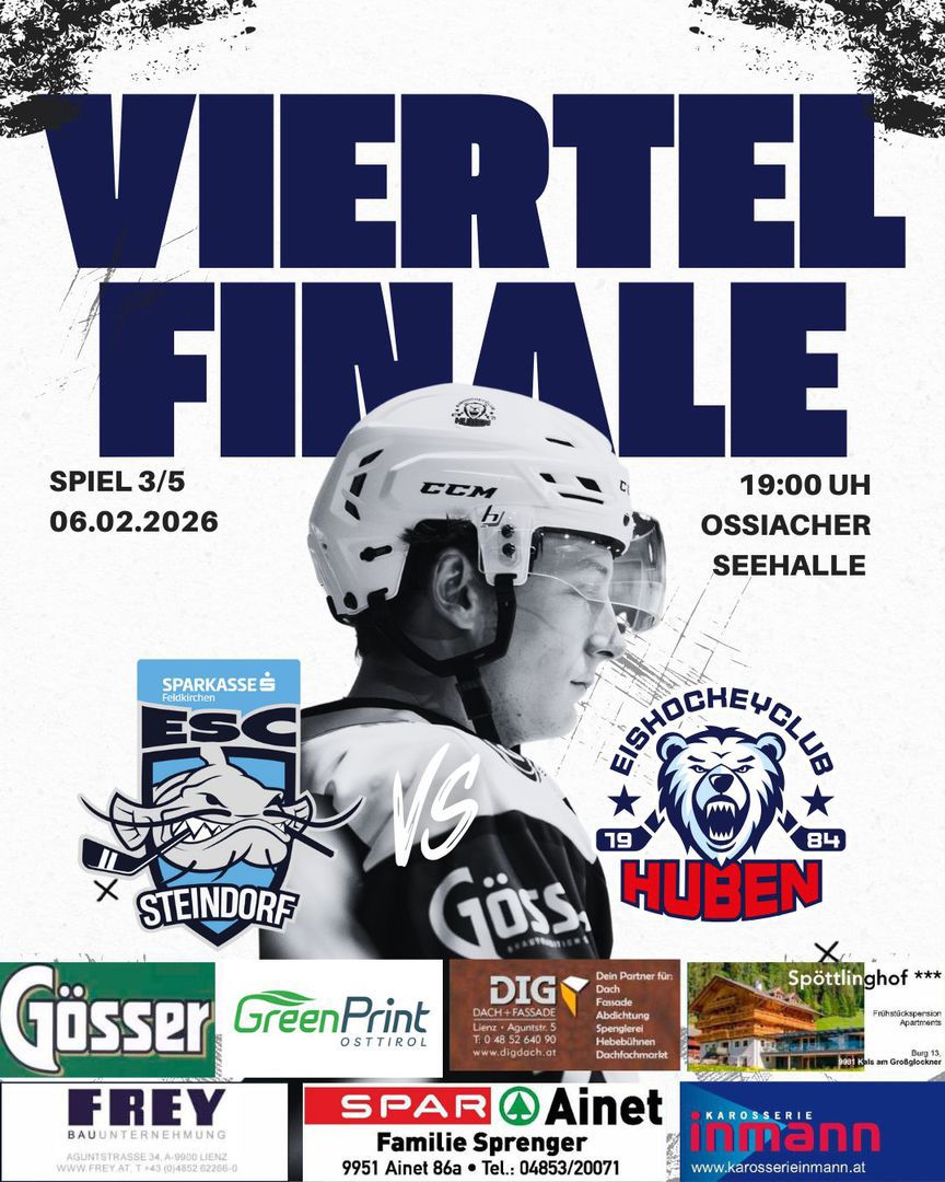 Im ersten Playoff Match gegen den ESC Steindorf begannen die die Gäste aus Osttirol sehr druckvoll und waren in den ersten zehn Minuten absolut spielbestimmend. Doch nach einem Abwehrfehler brachte Philipp Kreuzer die favorisierten Steindorfer mit 1:0 in Führung. Leider passierte gegen Ende des ersten Drittels noch eine unglückliche Abwehr vor dem Tor und Julian Maurer sorgte für das 2:0 des ESC Steindorf.